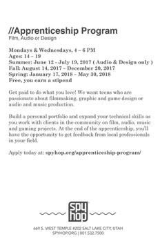 Spy Hop offeres a range of classes from filmmaking, design, music production and apprenticeship programs.